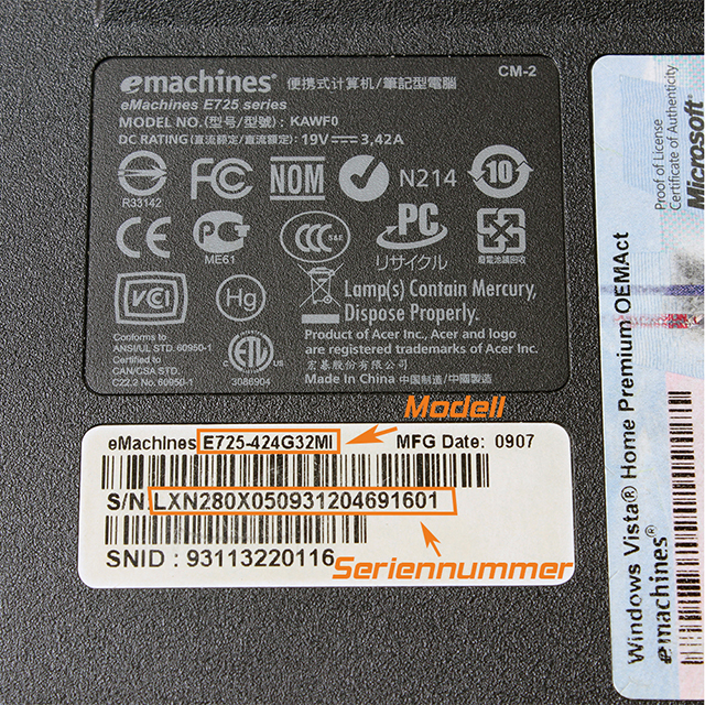 Displaydeckel / Backcover für eMachines - E-Serie - E525